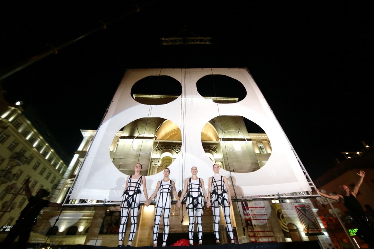 QUadro was born from the dream of dancing on a flying wall, as if those of the buildings on which we are used to perform, took flight!